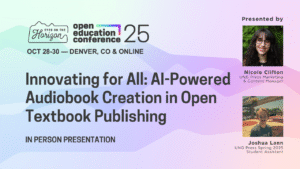- “Innovating for All: AI-Powered Audiobook Creation in Open Textbook Publishing” OpenEd25 Presentation